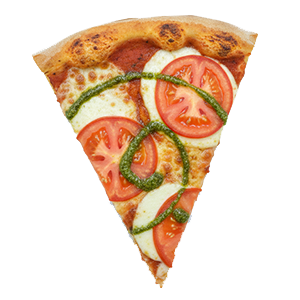 Salsa de tomate, mozzarella, tomate en rodajas y salsa pesto.