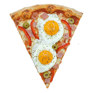 Salsa de tomate, mozzarella, jamón dulce, pimientos rojos, olivas verdes y huevo.
