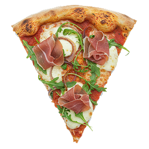 Salsa de tomate, mozzarella, rúcula, jamón serrano y cebolla caramelizada.